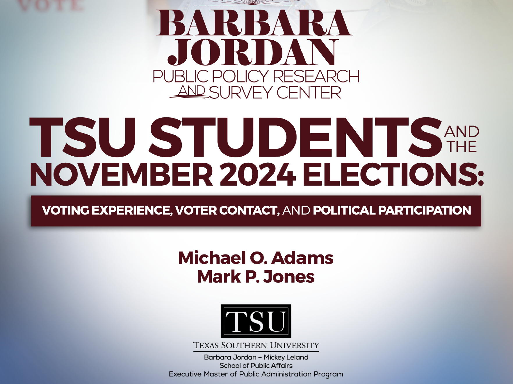 Discover how Texas Southern University students engaged in the 2024 election—from where they voted and what influenced their participation to how they were contacted by candidates and campus organizations. This survey reveals key insights into student voting behavior, civic engagement, and barriers to participation. Read the full report